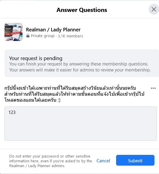 ( หลังกดเข้าร่วมให้พิมพ์ "123" ในส่วนข้อความก่อนเข้ากลุ่ม )